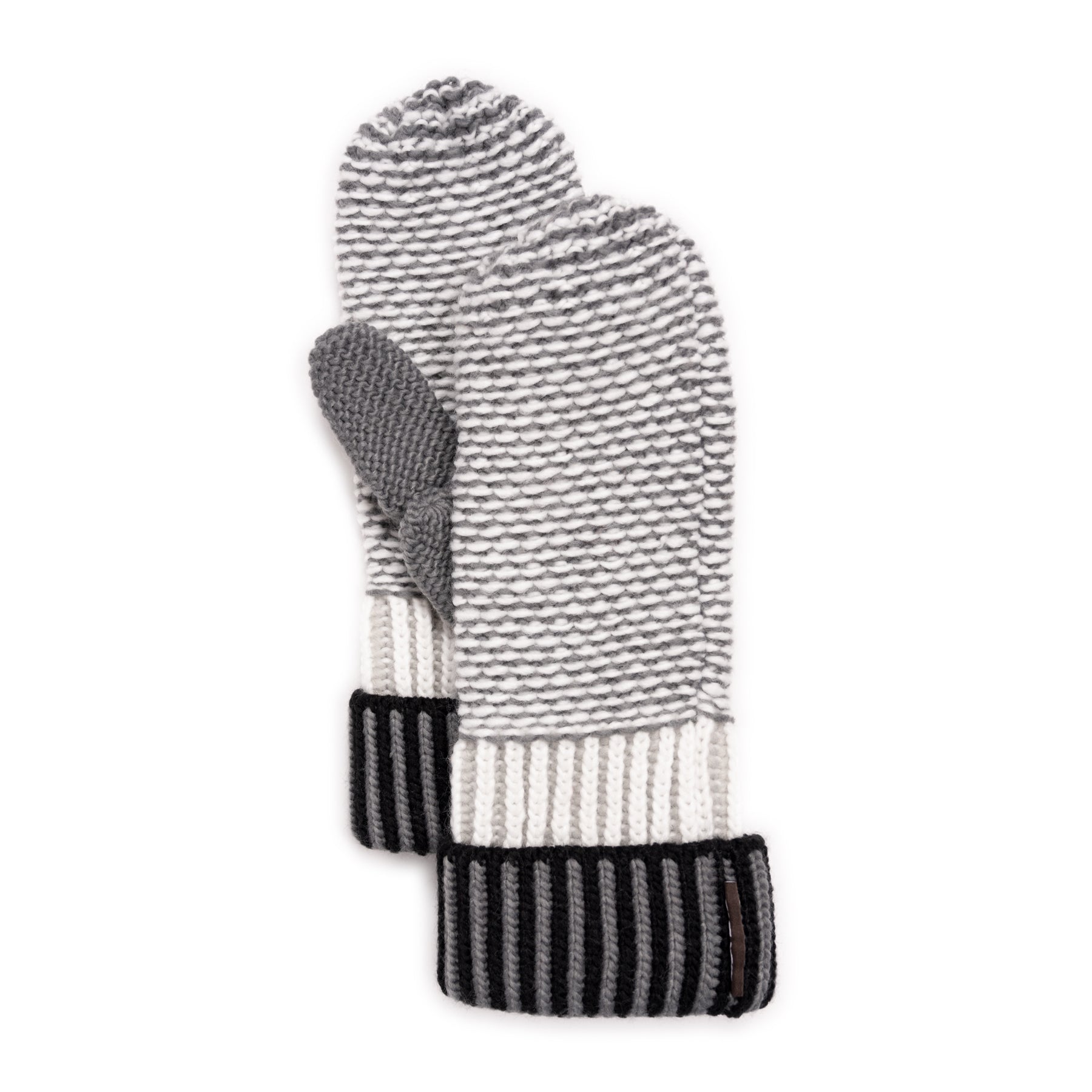 Stay warm in the cold weather in MUK LUKS Women's Textured Stripe Mittens. With a fun, textured pattern in neutral colors, and a thick, coordinating cuff, these mittens are sure to keep you cozy and stylish all season long.  Machine wash on gentle cycle, no bleach, tumble dry low heat.