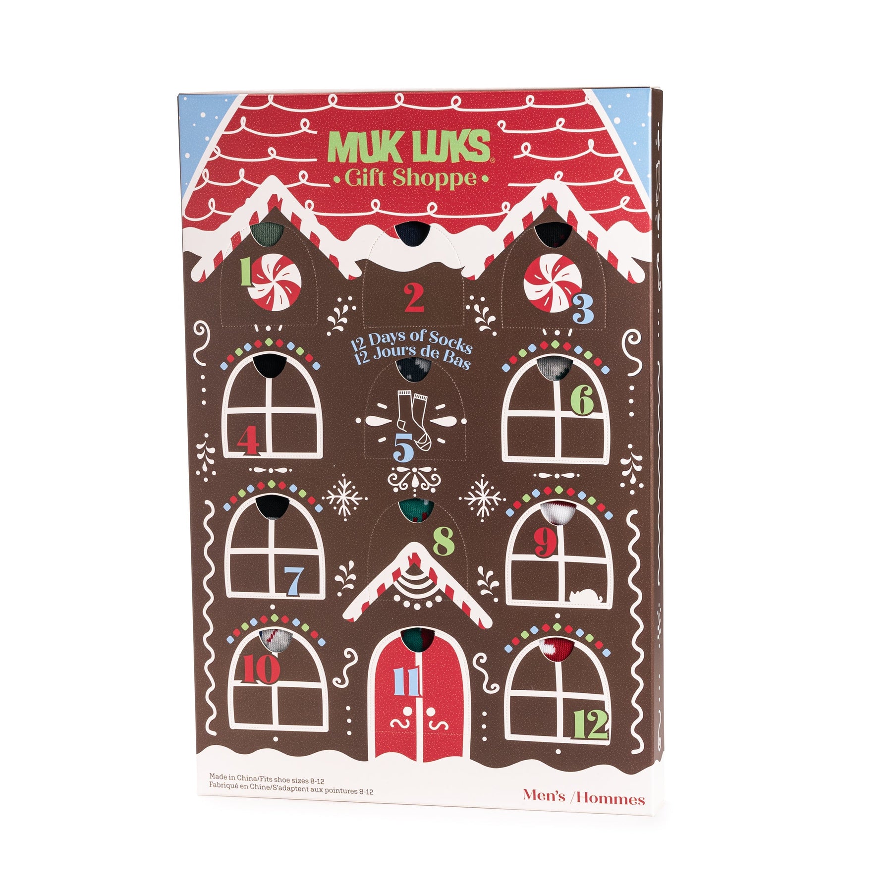 Gift yourself or the best men in your life 12 pairs of MUK LUKS cozy socks for the holidays. This assortment includes 6 pairs of crew socks and 6 pairs of no-show socks, all in fun and festive patterns.
