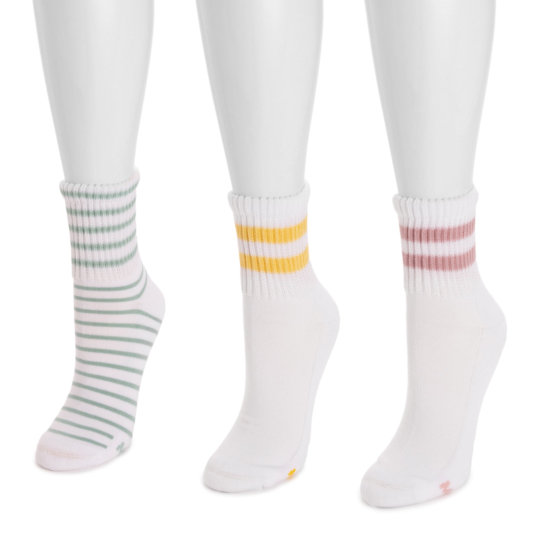 Stay comfortable and stylish with MUK LUKS® 3-Pair Cotton Quarter Crew Socks. Crafted from soft, breathable cotton, these socks feature wide rib cuffs for a secure, stay-put fit. Perfect for everyday wear, they combine classic design with all-day comfort.