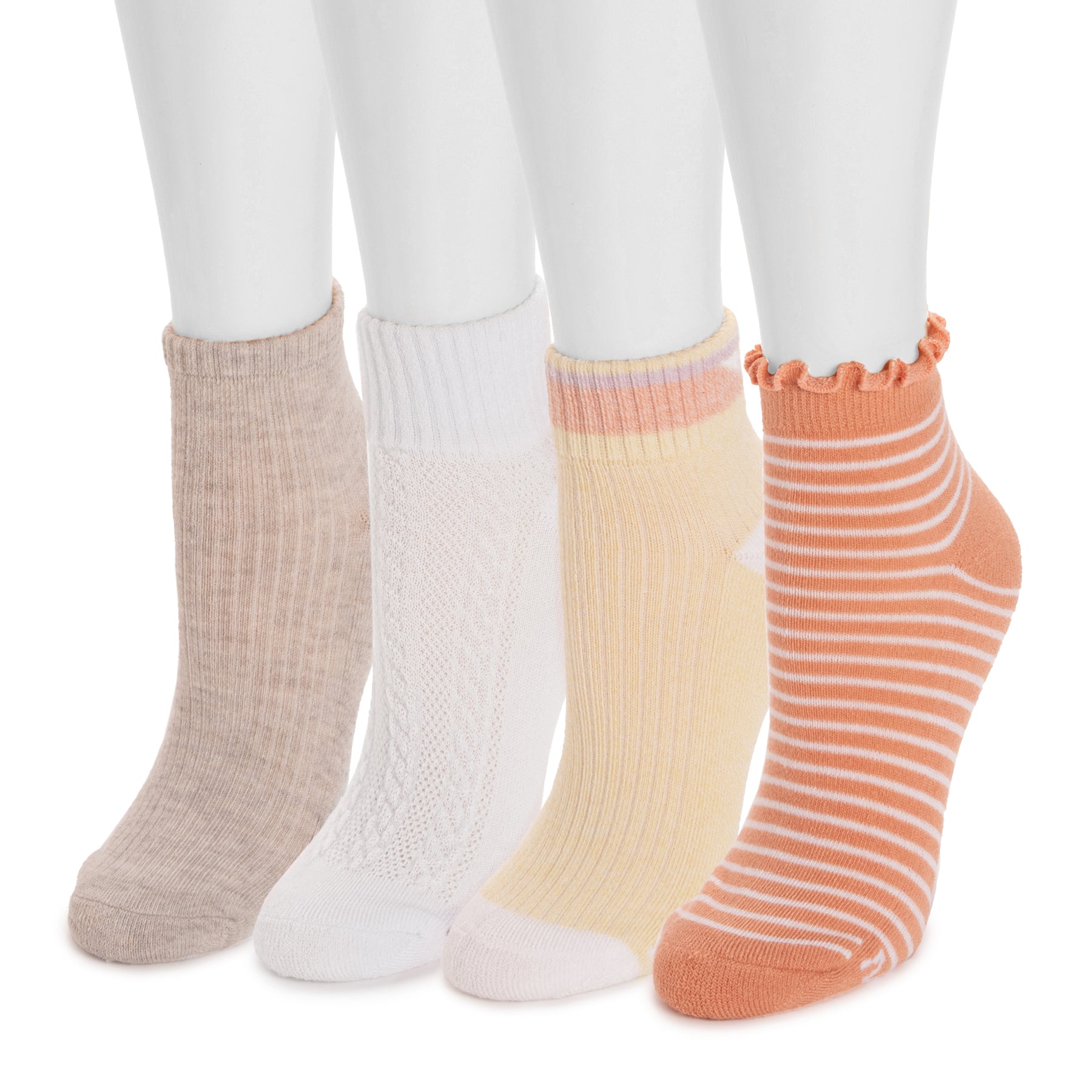 Treat your feet to ultimate comfort with Muk Luks Women's Dream Step Mini Crew Socks! This 4-pair pack offers arch support for that just-right fit and a ribbed cuff design to keep your socks perfectly in place—no slipping here! In versatile neutral colors, these cozy mini crews are your new everyday essential for style and comfort that lasts all day.