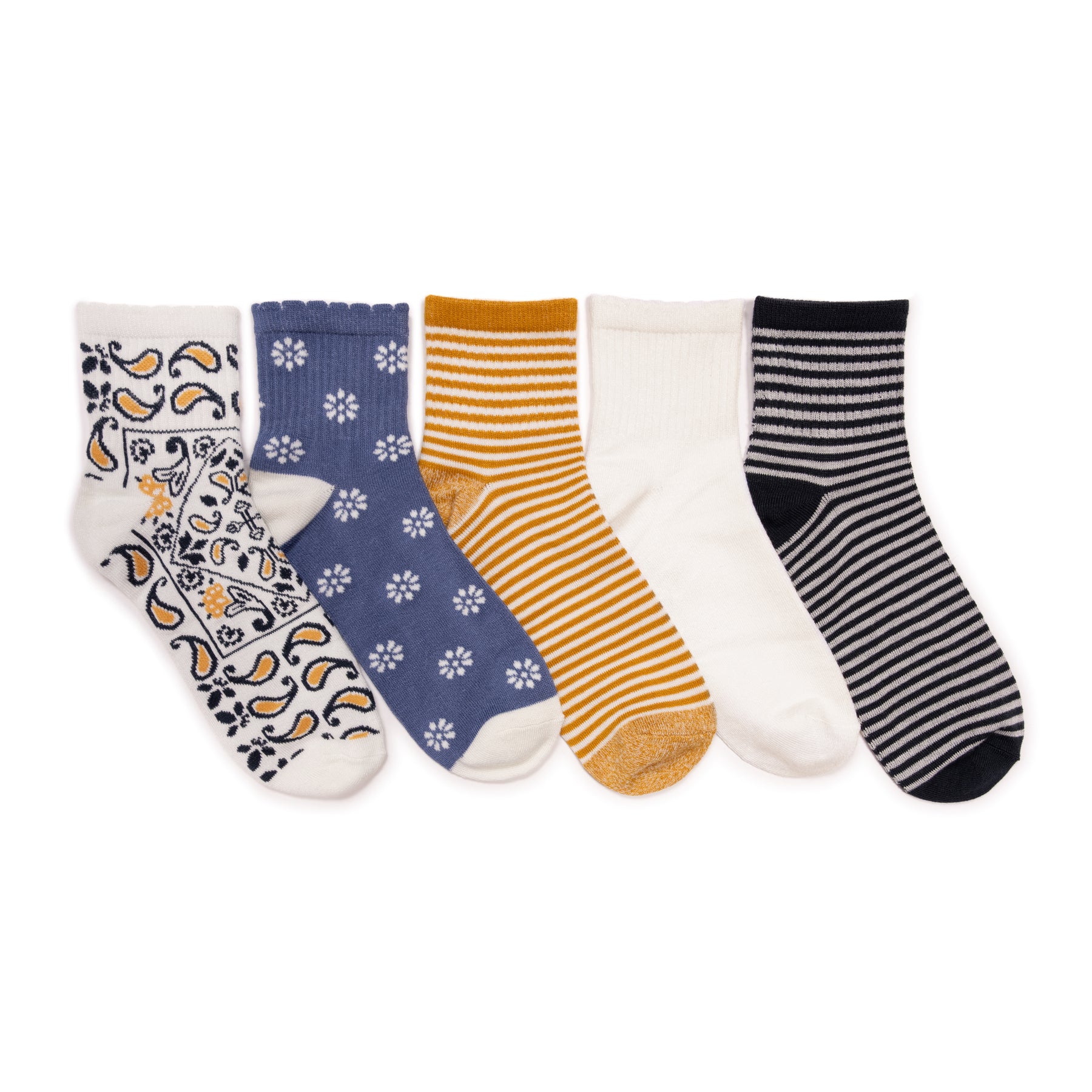Add a pop of personality to your sock drawer! This versatile MUK LUKS 5-pack Quarter Crew Sock brings together timeless patterns and everyday comfort. Featuring a mix of prints, stripes and solids, these socks are perfect for any mood or outfit. Whether you’re dressing up, keeping it casual, or adding a fun twist to your look, this set has you covered. Soft, stylish, and effortlessly chic—your feet will thank you!