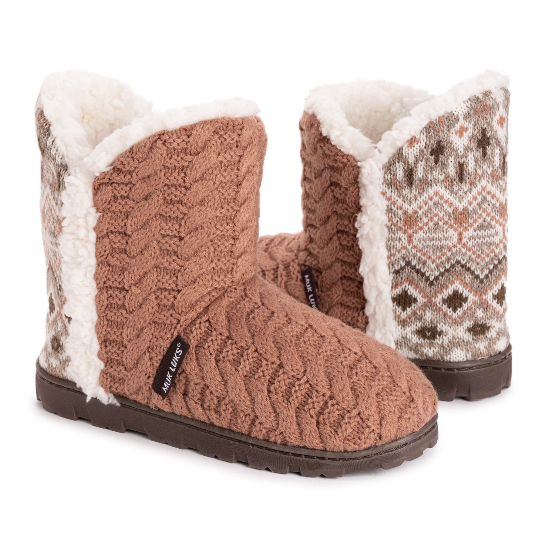 A seasonal favorite! Cozy up with the Muk Luks Women's Cheyenne Slipper Boots, the perfect go-to for cold weather comfort. These boots feature a soft faux fur lining, uniquely in-house designed knit patterns, and a multi-layer comfort foam footbed for better and longer lasting support. The indoor/outdoor sole means you can take these boots from staying in to running out with ease. Treat your feet to warmth and style with Muk Luks Cheyenne Slipper Boots—your cozy companion all season long!